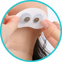 Stick the strip below your chin and ensure the groove is near your throat (make sure this site is clean and dry).